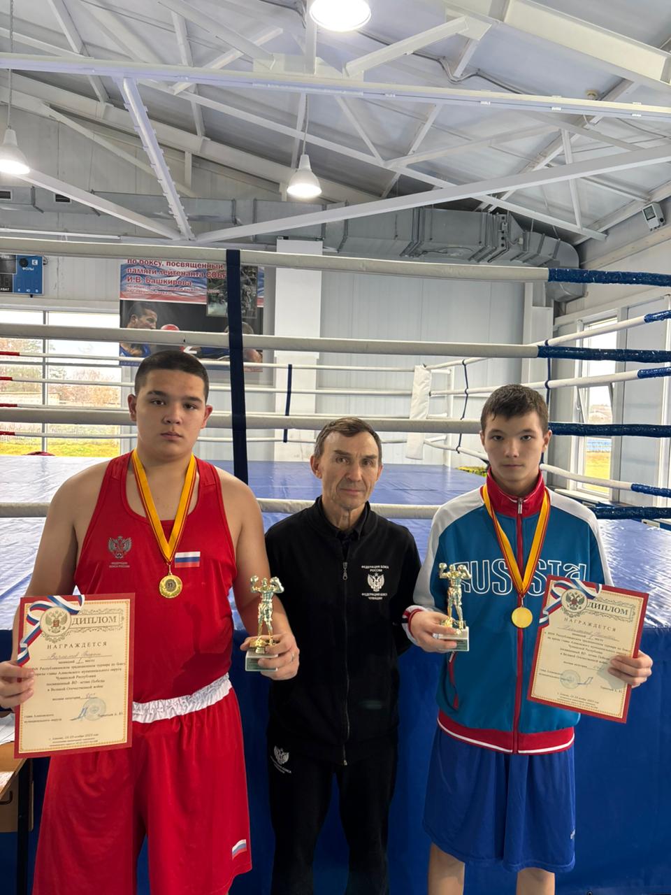 На минувшей неделе боксеры Чувашии приняли участие в XXVII традиционном открытом республиканском турнире на призы главы Аликовского муниципального округа, посвященном Году Победы и патриотизма, в котором приняло участие 120 юных спортсменов из Чувашии, Татарстана, Марий Эл, Самарской и Ульяновской областей. Большим составом выступила и цивильская боксерская дружина, в активе которой 2 золотых, 3 серебряных и 2 бронзовые награды. Так, победителями турнира в своих весовых категориях стали подопечные заслуженного работника физической культуры и спорта Чувашской Республики Николая Ремеслова члены сборной команды Чувашской Республики Никита Никифоров (54 кг) и Вадим Варламов (+80 кг). Серебряных наград удостоились наши Сергей Григорьев (24 кг), Егор Фадеев (36 кг) и Ульяна Александрова (57 кг). Бронза на счету наших цивилян Тимофея Федорова (34 кг) и Владимира Григорьева (48 кг). Все победители и призеры награждены ценными подарками медалями и дипломами соответствующих степеней.