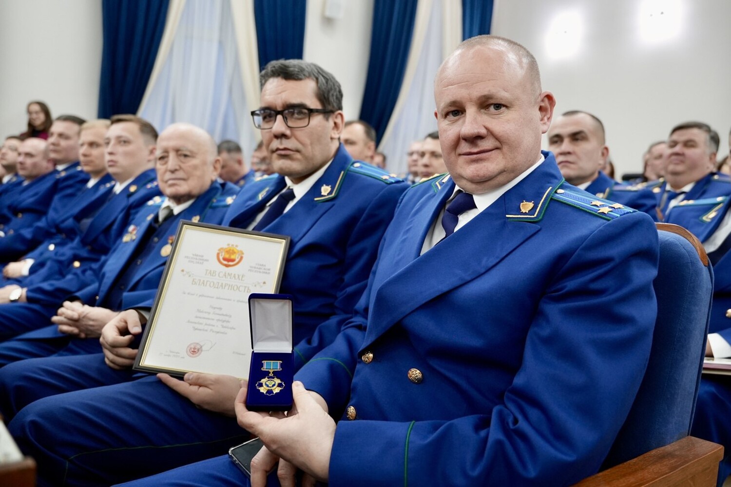 В ходе торжественной церемонии лучшим сотрудникам прокуратуры были вручены государственные награды и ведомственные знаки отличия.